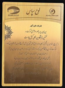 این لوح به پاس حضور شرکت فن آور گستر مطلق در نخستین نمایشگاه بین المللی کیش پلاست و نیز برپایی غرفه ای زیبا و شکیل که مکان عرضه و نمایش تلاش خستگی ناپذیر آن شرکت محترم می باشد تقدیم گردیده است.
