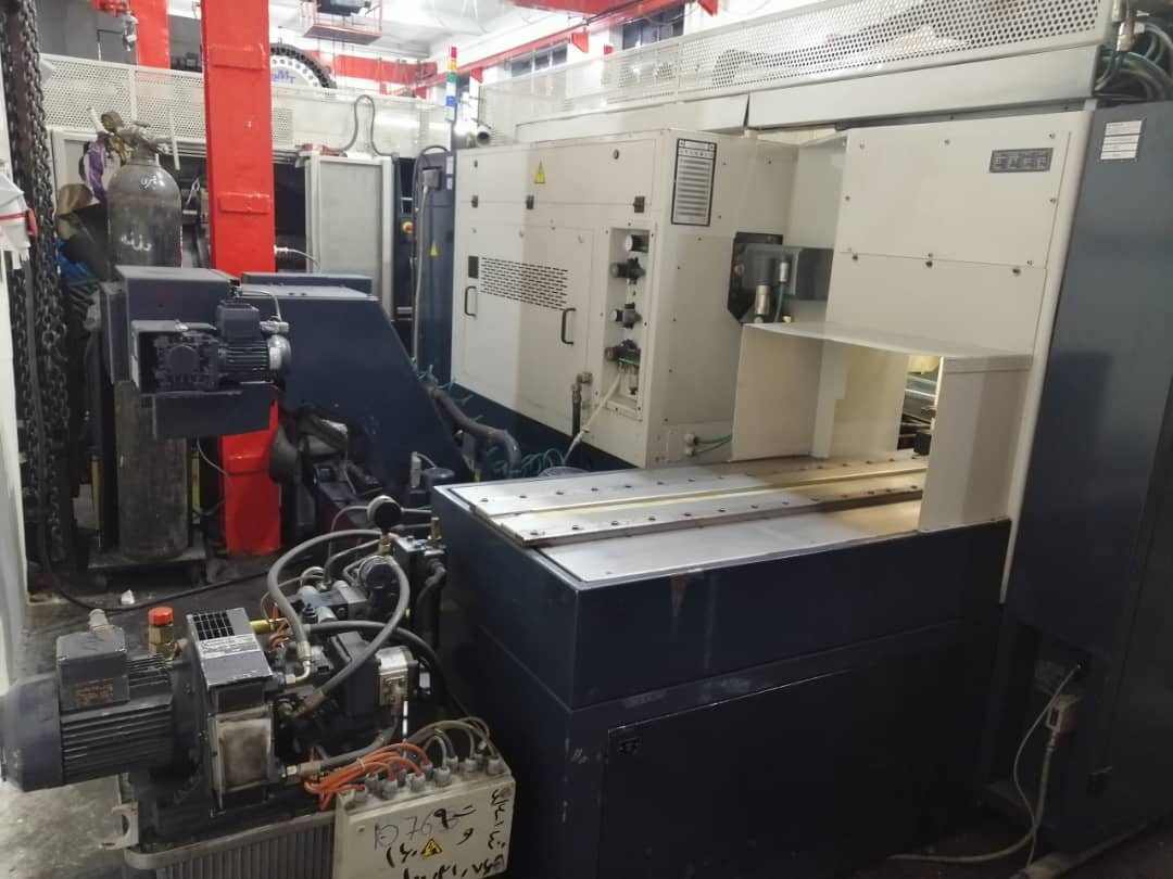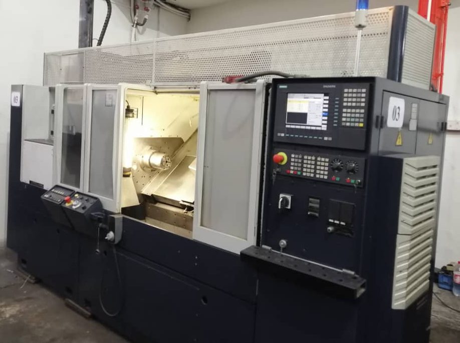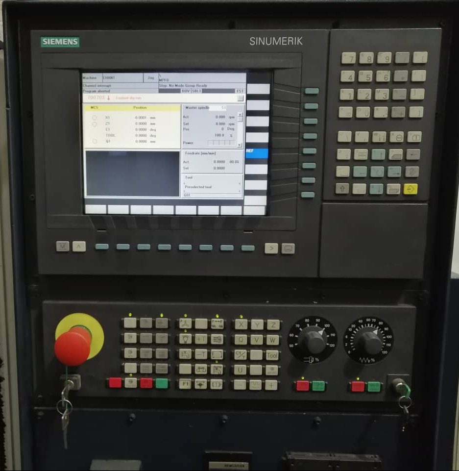 Origin : Germany Year : 2002 Control : Siemens Sinumerik 840D X Axis : 400 mm Z Axis : 400 mm طول ماشینکاری Speed Spindle : 8000 rpm Chuck Size : 150 mm Turning Diameter:120mm قطر ماشینکاری Bar Capacity : 42 mm قطر گلویی Turret : 12 Pos. برقی Chip Conveyor Robot Weight : 4200 Kg. Dim. : 3.6 x 3 x 2.8 m کانوایر ، روبات قطعه گیر ، چیلر ، سفاله کش و مرغک دارد.